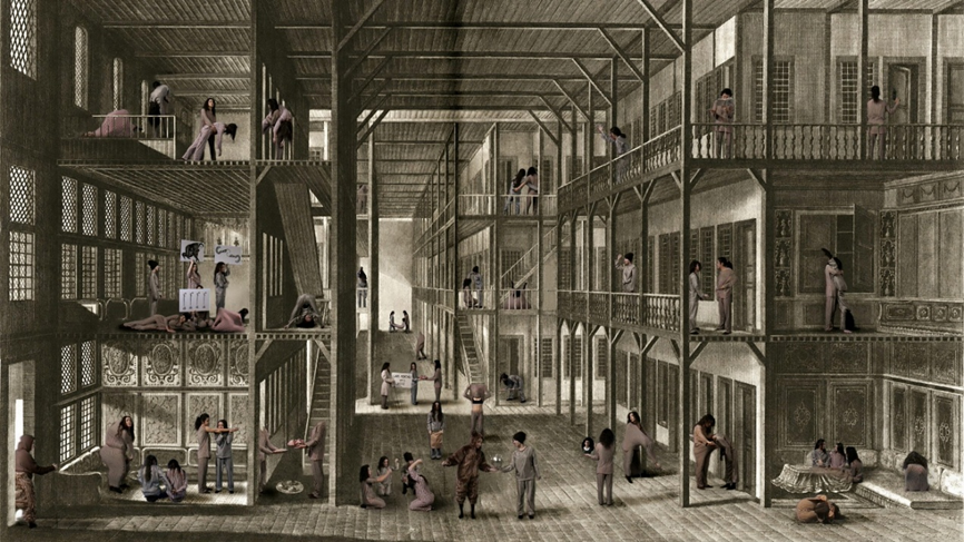 Sultan III. Selim döneminde İstanbul’da çalışan Antoine-Ignace Melling’in hareme dair gravürlerini başlangıç noktası alan Eviner’in Harem videosu oryantalist harem imgesinin görsel ve bedensel kodlarını yapıbozuma uğratır ;gravürdeki düzen, durağanlık ve sessizlik hâlini çözerek ona hareket, dönüşüm katar.