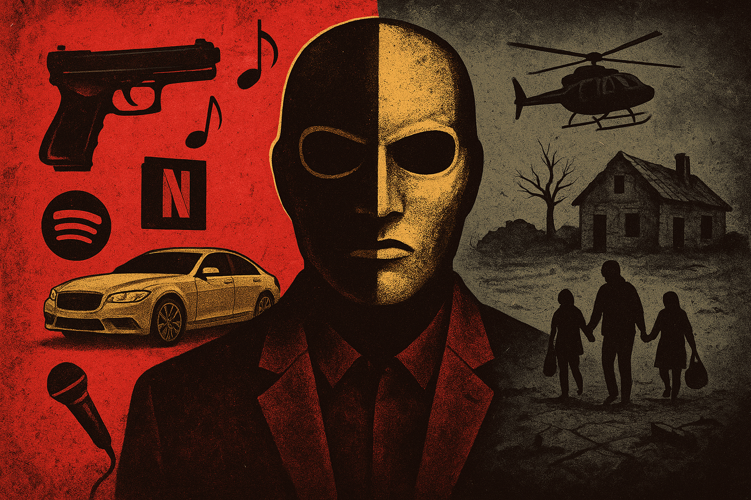 Narco-culture feeds on symbols: narcocorridos (folk ballads) that portray the exploits of drug lords as if they were folk heroes; TV series that elevate cartel bosses into aspirational protagonists; and stories of communities that receive from them the kinds of services the state has long failed to provide—paved roads, electricity, water, parks, and churches. Through such gestures, criminal leaders are positioned as figures of power and influence within the social fabric. Globally, narco-themed content consistently ranks among the top-trending shows and films on streaming platforms, reflecting strong international engagement with these dramatized realities.