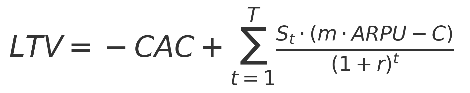- T ay boyunca toplam bugünkü değer (PV) – CAC çıkarılarak: