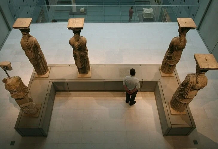 A visible example can be found in the British Museum in London, where the so-called Elgin Marbles are displayed, along with one of the Caryatids from the Erechtheion. At the Acropolis Museum in Athens, five original figures stand together, with an empty space left where the missing one should be. That absence has become a living memory of theft. It is a reminder of how colonizing nations transformed sacred pieces into cultural trophies while continuing to charge tickets to admire them.