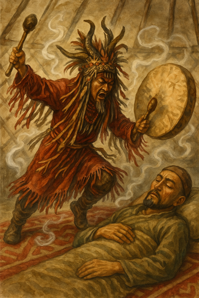 Kırgız türklerinde Baksı adı verilen hekimler tedavi esnasında müzik, şiir, taklit ve dansı kullanmıştır.